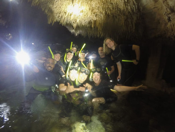 Una emocionante pared de rapel y nado y exploración en un cenote caverna.